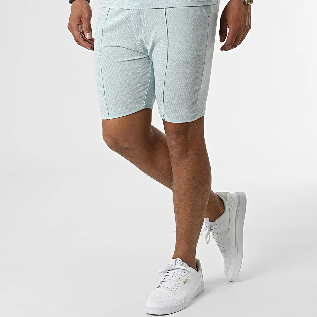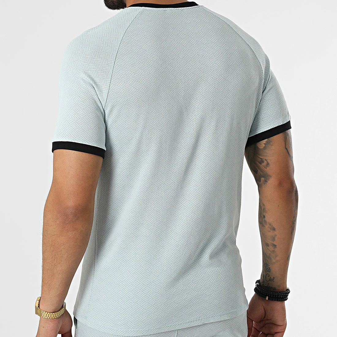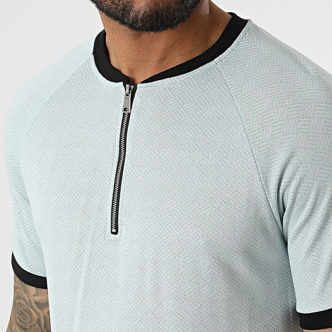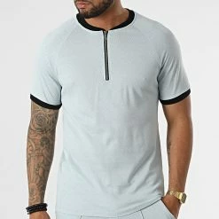 De gros 👍 Ensemble Tee 👚 Shirt Col Zippé Short Jogging C5840-C8150 Bleu Clair de MTX 🔥