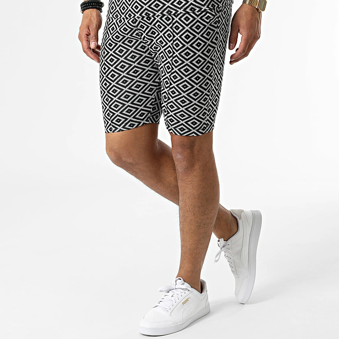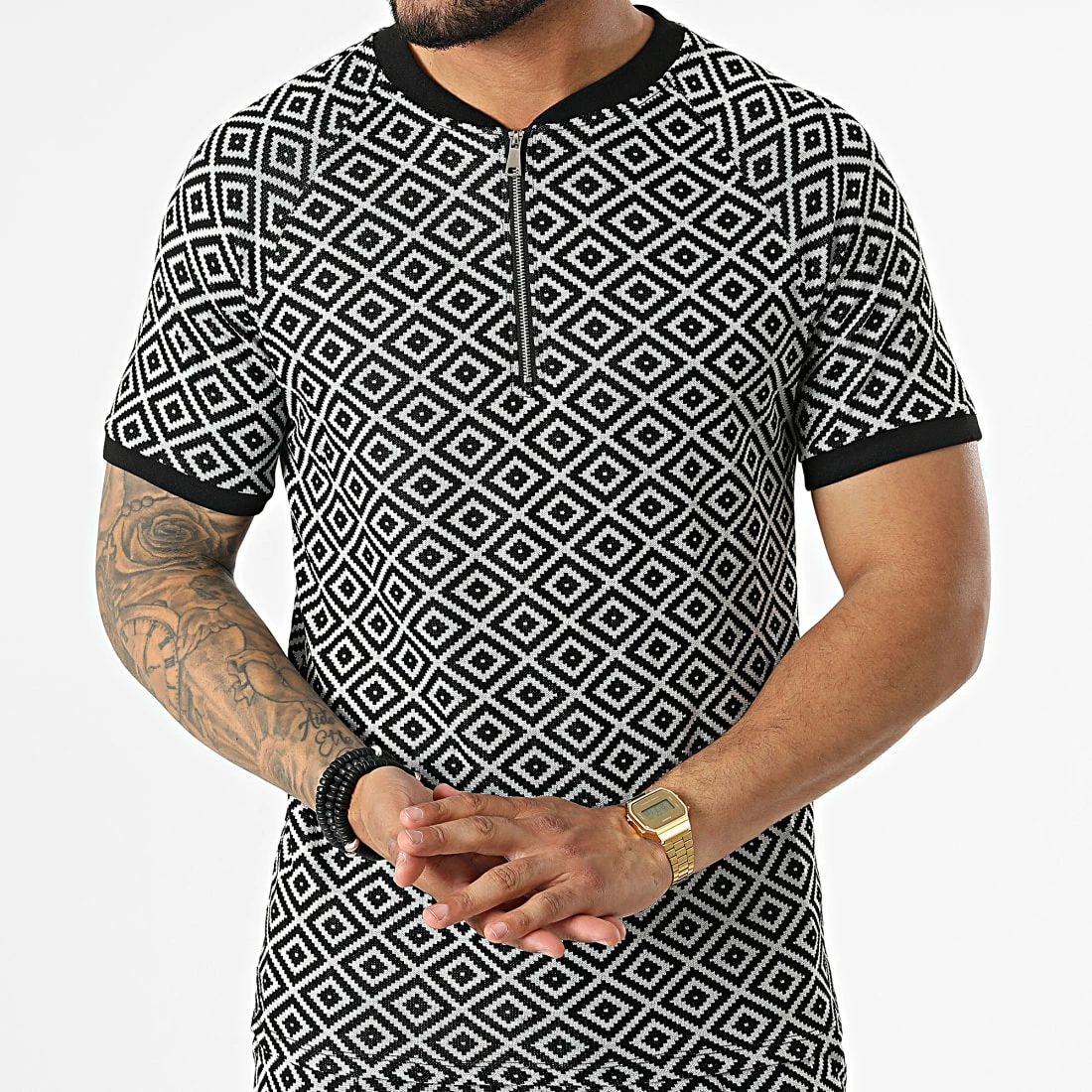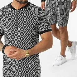 Promo ⭐ Ensemble Tee 👚 Shirt Col Zippé Short Jogging C5846-C8152 Noir Blanc de MTX 🧨