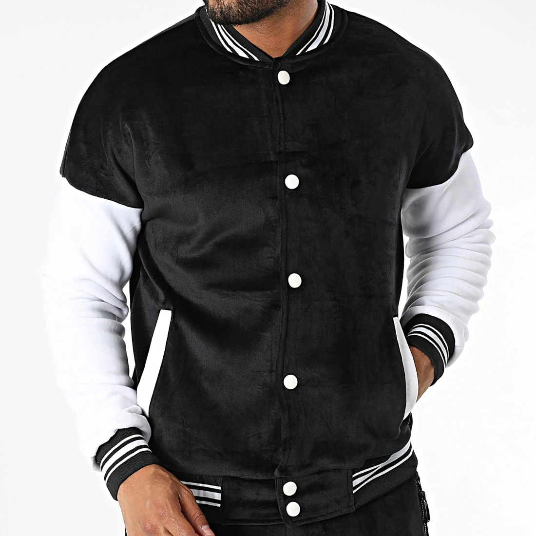 • Ensemble veste teddy style baseball et pantalon jogging aspect velours doux
