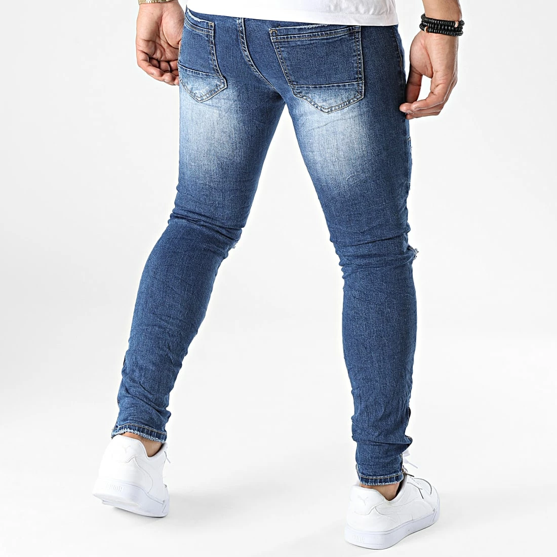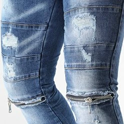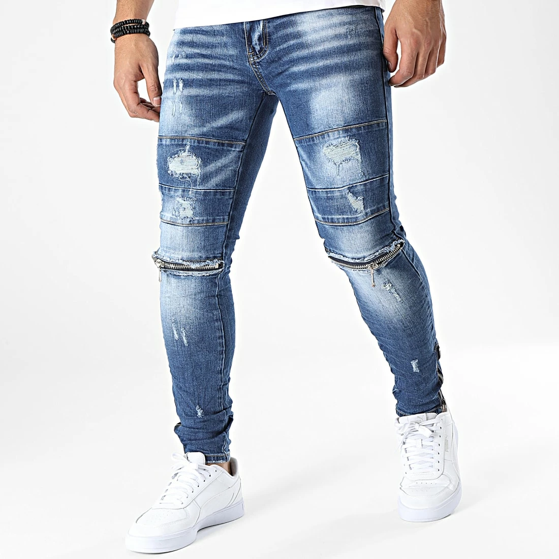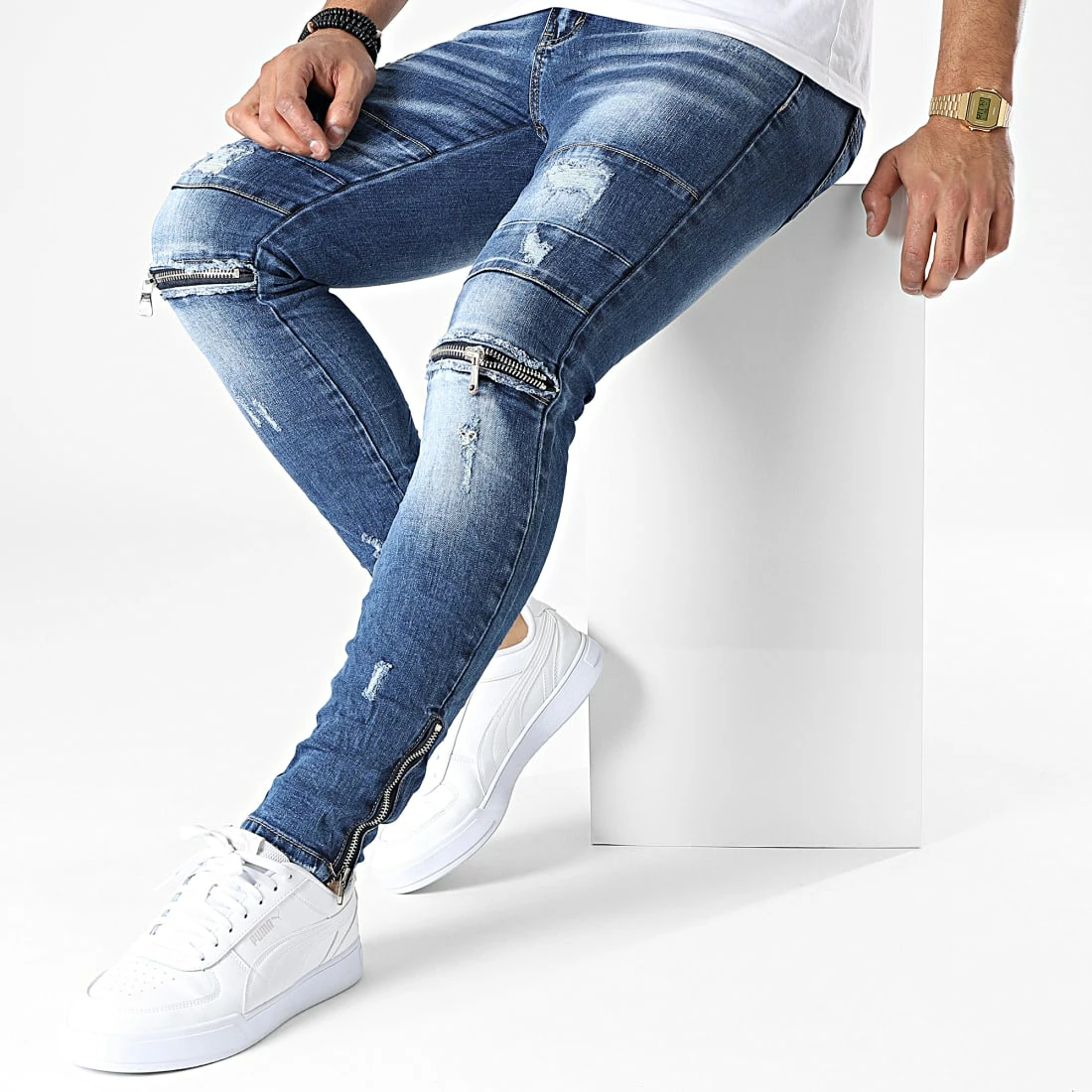• Jean skinny tendance finition usée et délavée avec rapiéçages et zips décoratifs