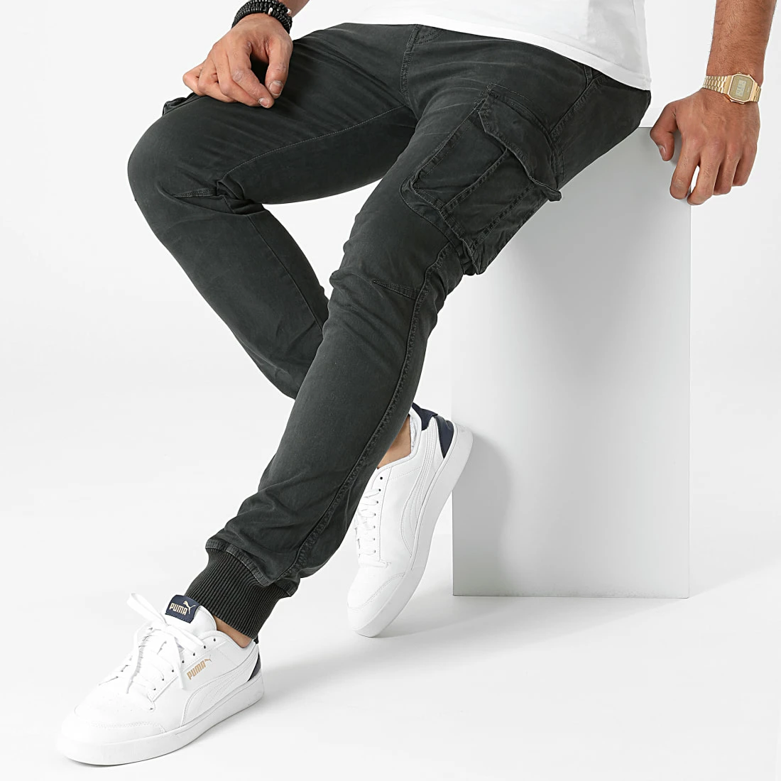 âąÂ Jogger pant finition lĂ©gĂšrement dĂ©lavĂ©e avec poches cargo