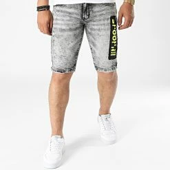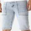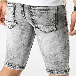 • Short jean tendance finition délavée et usée avec rapiéçages