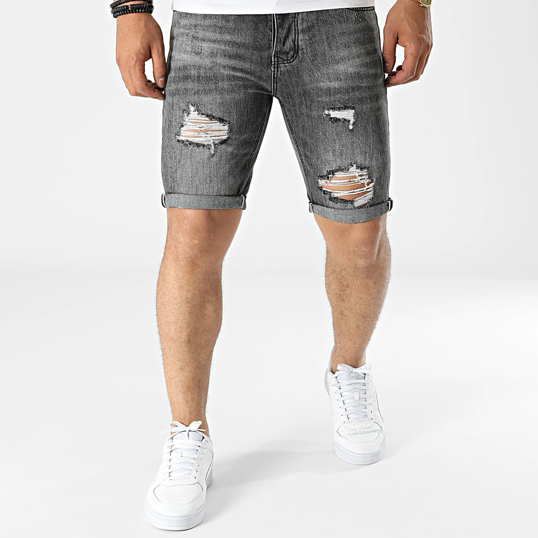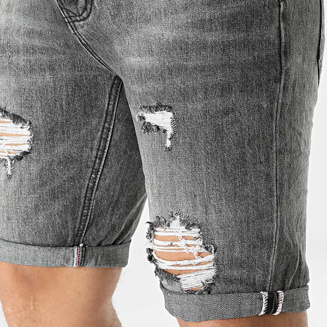 • Finition usée, délavée et avec trous apparents