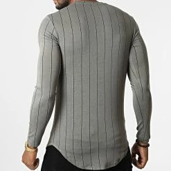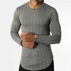 Sortie 👍 Tee 👕 Shirt Manches Longues Oversize A Rayures D7092 Gris de MTX 🔥