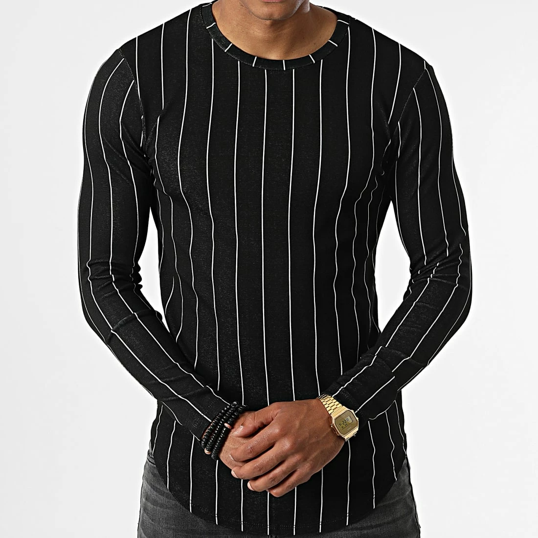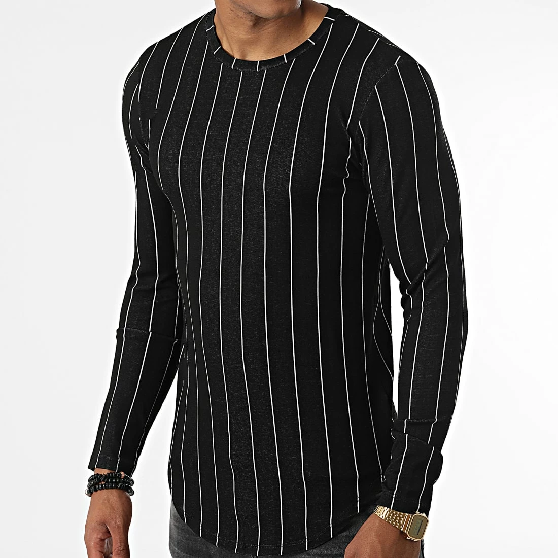 • Tee shirt manches longues tendance avec motif à rayures imprimé