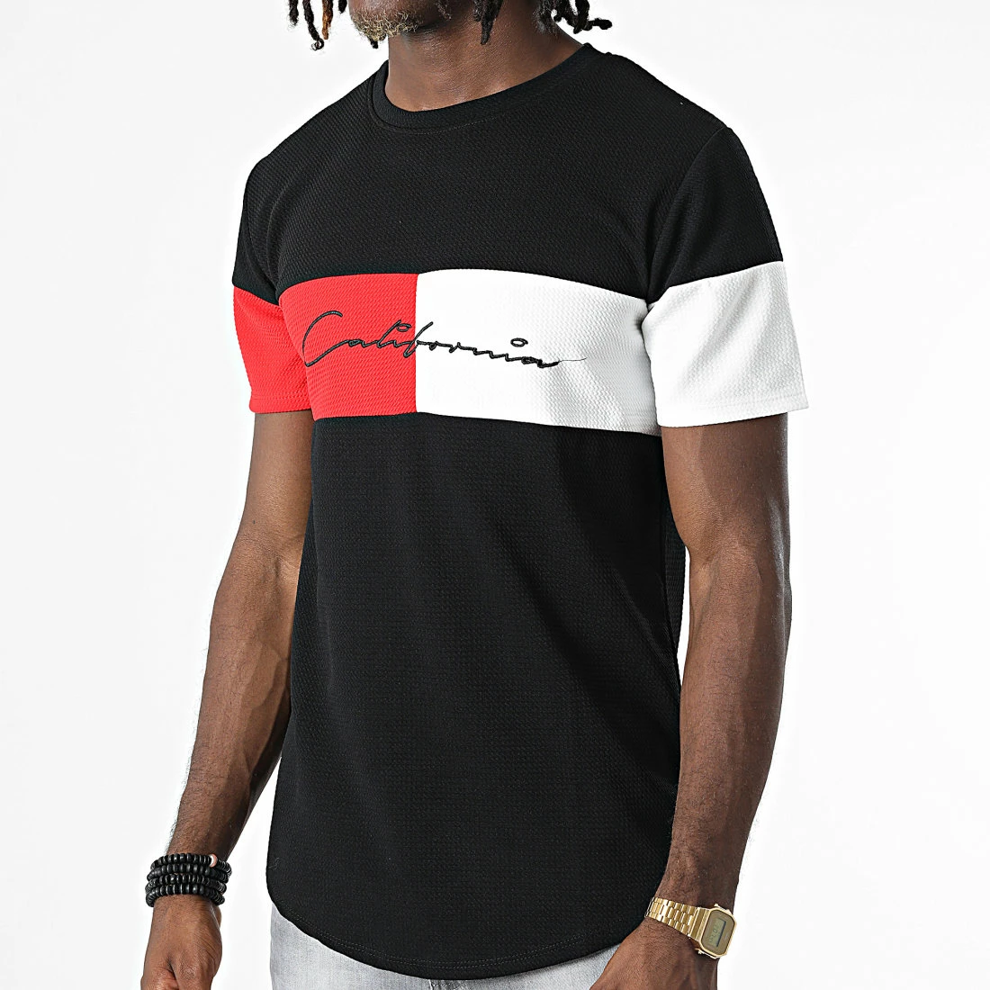 Remise ⌛ Tee 👕 Shirt Oversize 6356 Noir Rouge Blanc de MTX 🌟