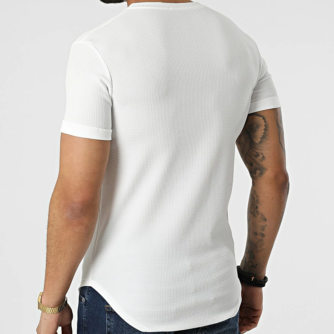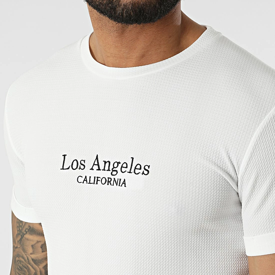 • Tee shirt long et texturé avec broderie sur l’avant