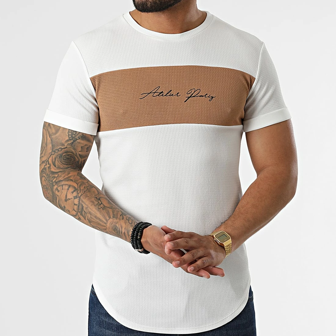Meilleure vente 🛒 Tee 👕 Shirt Oversize C5676 Blanc Camel de MTX 🔔