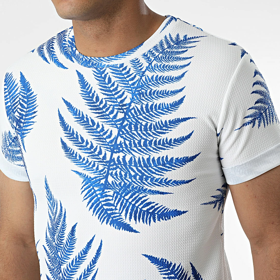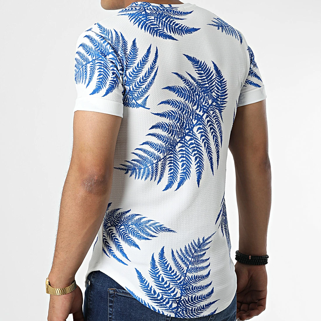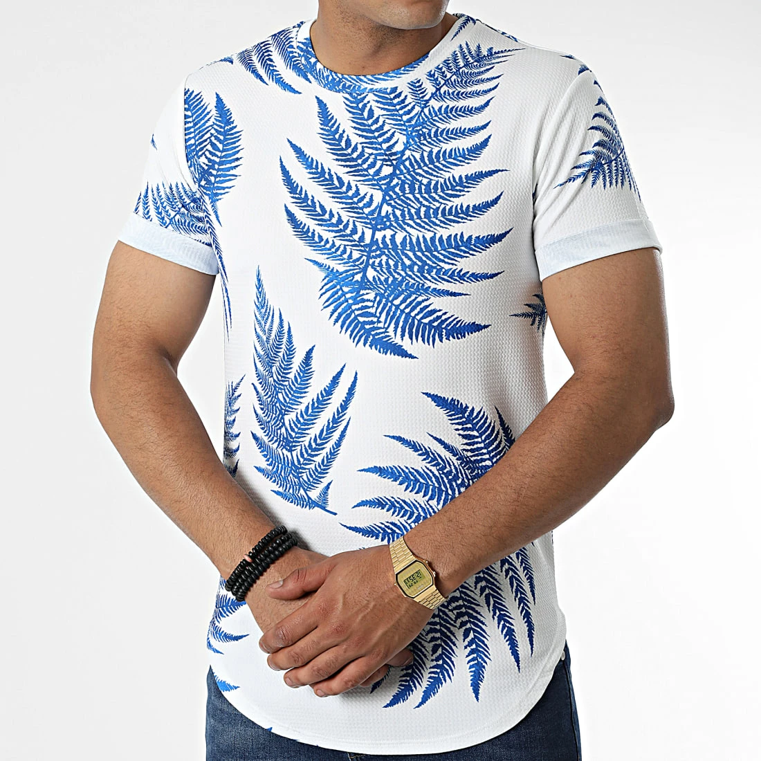 Vente flash 🤩 Tee 👕 Shirt Oversize U9424 Blanc Bleu Roi Floral de MTX 👍