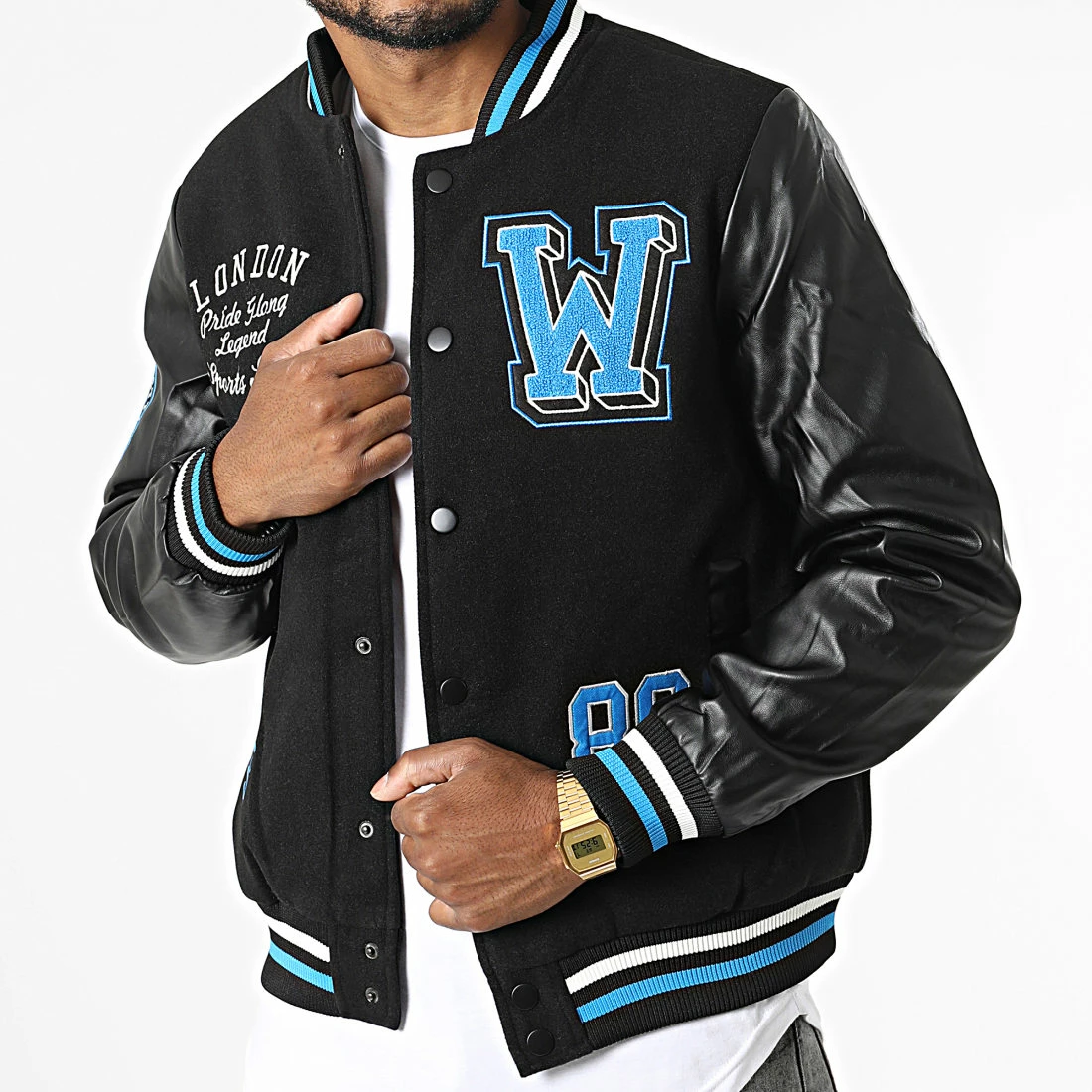 • Veste teddy style baseball bi-matière avec visuels brodés