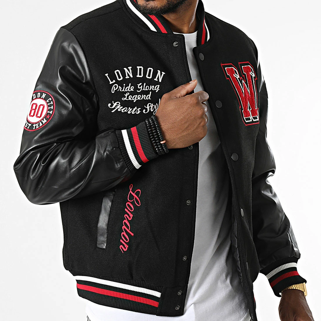 • Veste teddy style baseball bi-matière avec visuels brodés