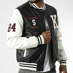 • Veste teddy style baseball tendance aspect cuir avec broderies