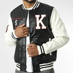 • Veste teddy style baseball tendance aspect cuir avec broderies