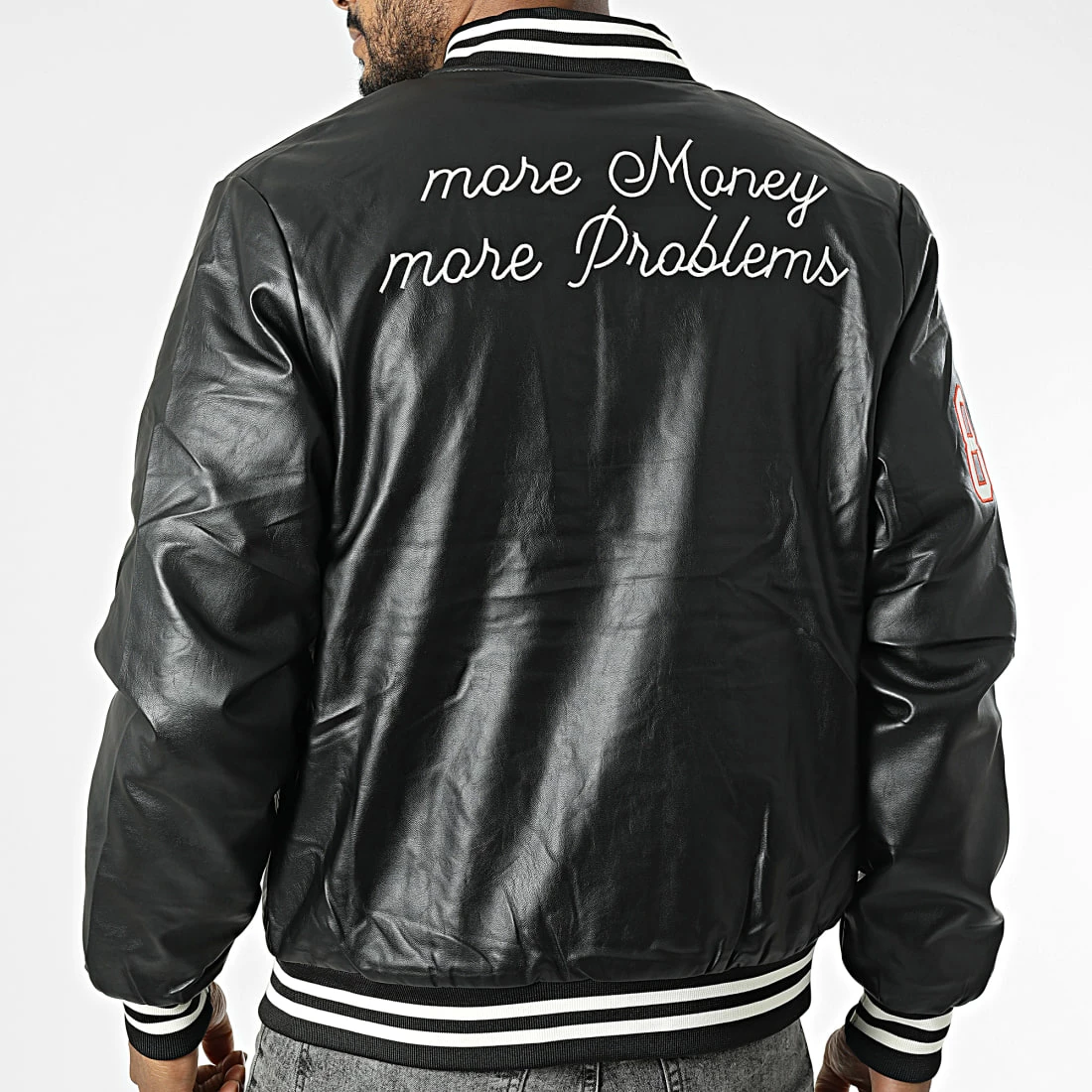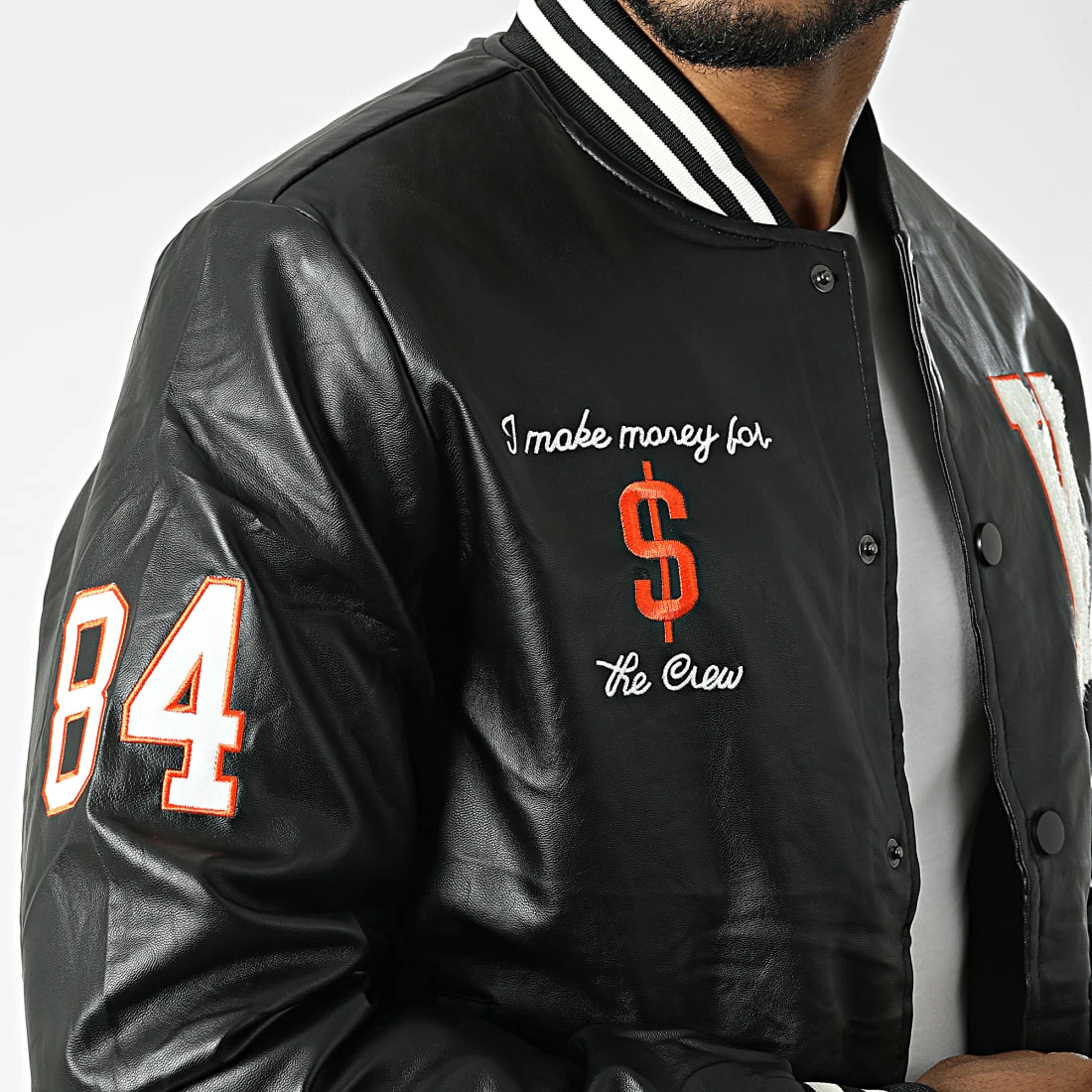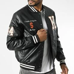• Veste teddy style baseball tendance aspect cuir avec broderies