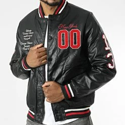 • Veste teddy style baseball tendance aspect cuir avec broderies